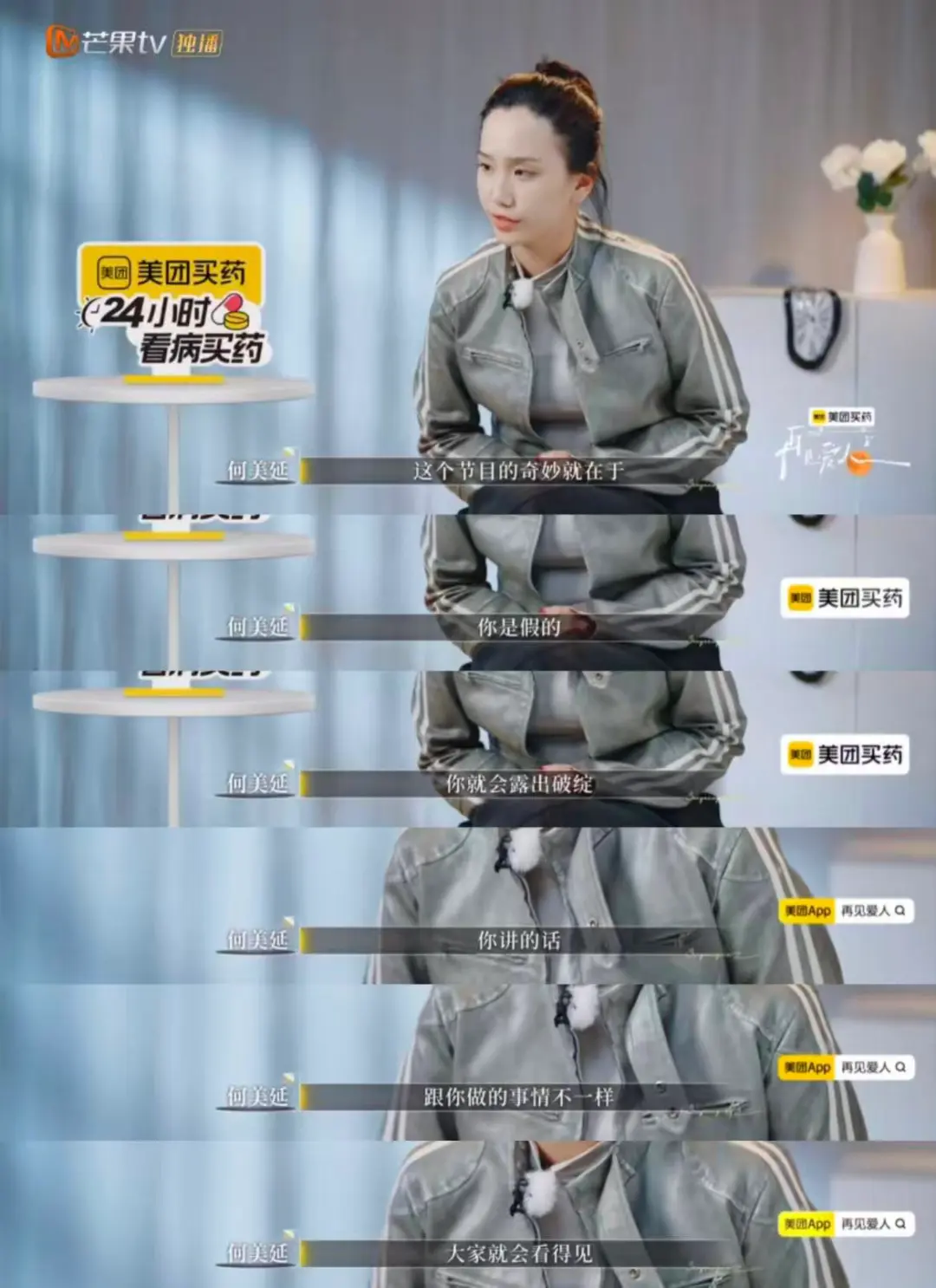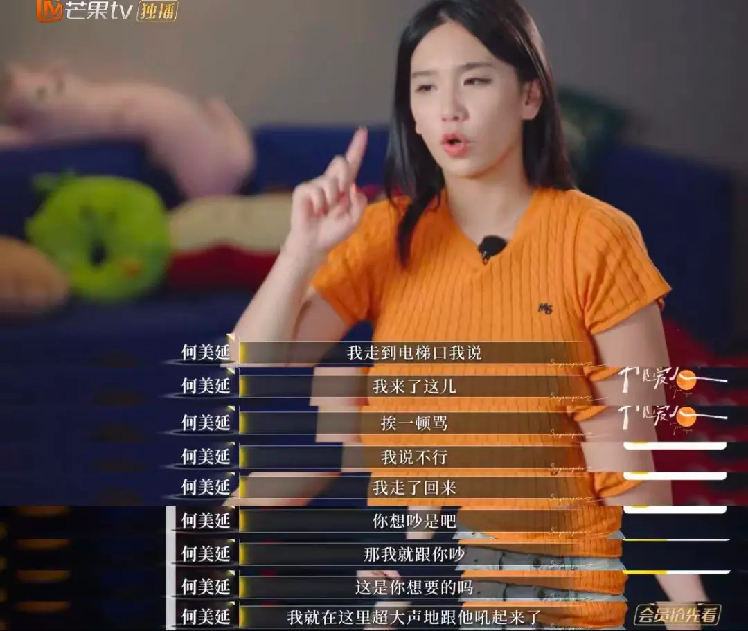 角色互换环节,何美延模仿梁淞的语气喊出“家里我赚钱,我吼什么吼”,这句话戳破了两人关系里的“经济上下位”,也道出了何美延缺乏安全感的根源。