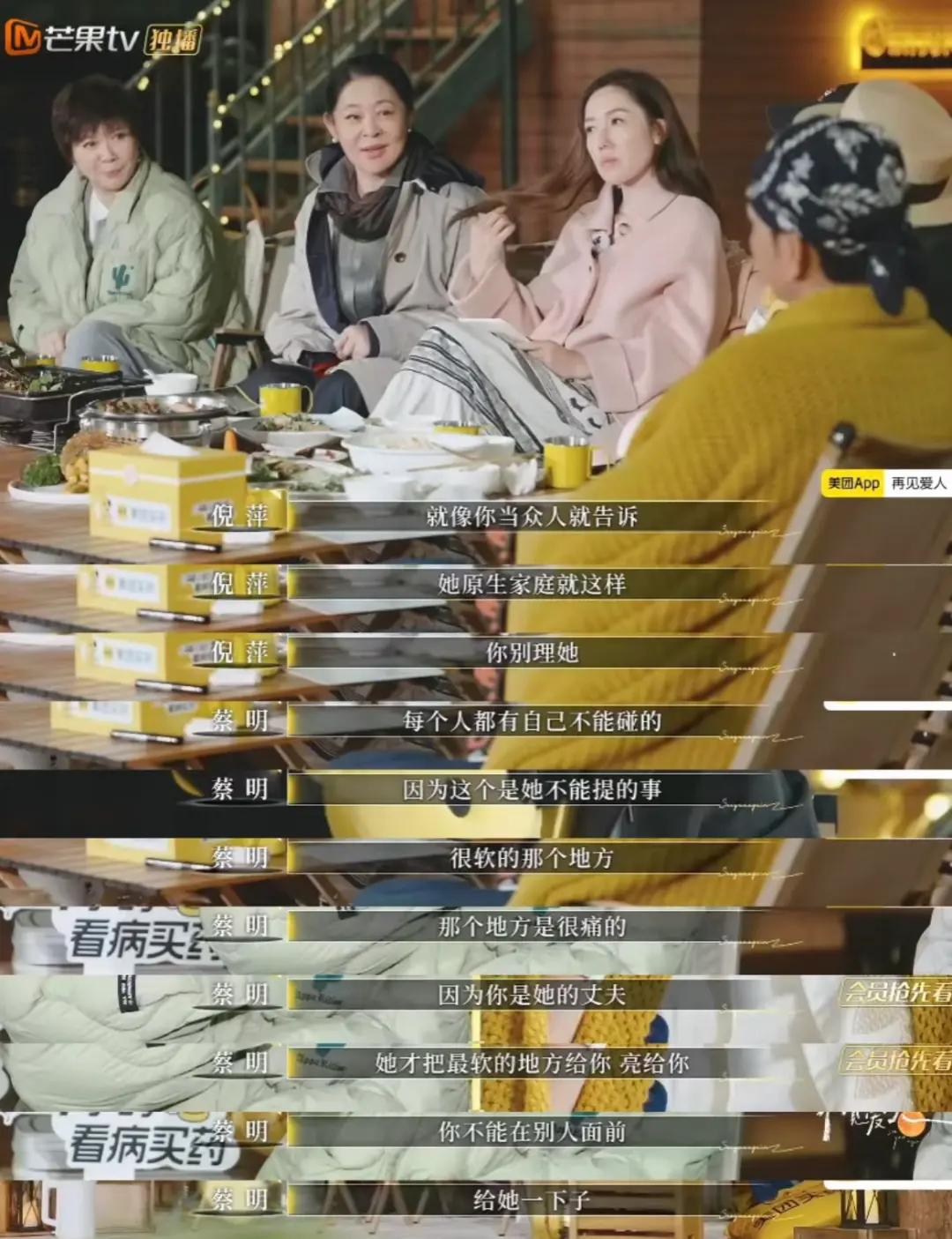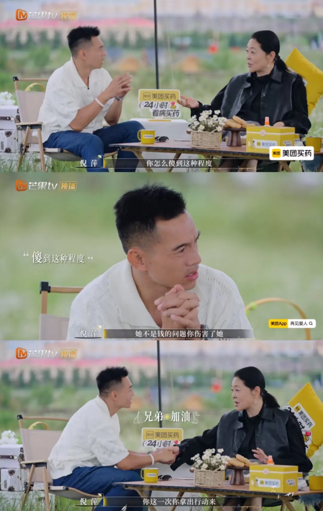 后续与倪萍和蔡明的饭桌谈心,节目组用了“最委屈的”命题,让梁淞何美延婚姻中的核心症结彻底摊开。