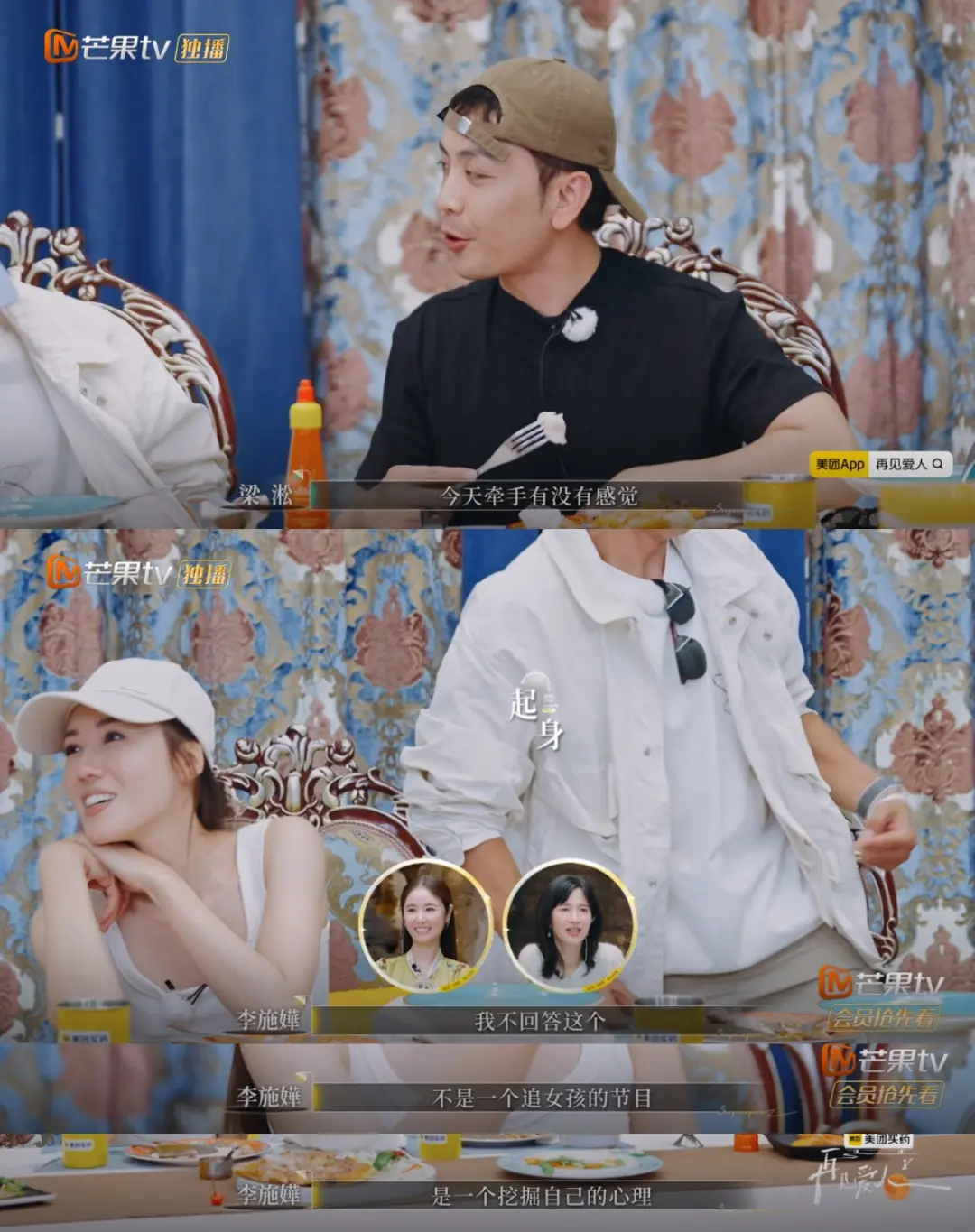 《再见爱人》的成功,证明了情感综艺不需要制造幻梦。就像第五期节目里,当梁淞问李施嬅“牵手有没有感觉”时,她认真纠正:“这不是追女孩的节目。”